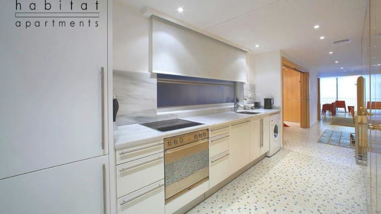 Die klimatisierten Apartments der Habitat Apartments Pedrera sind modern und stilvoll eingerichtet. Jedes Apartment verfügt über ein komfortables Wohnzimmer mit einem Sofa und einem Flachbild-TV. Die Küche ist komplett ausgestattet mit einem Geschirrspüler, einem Ofen und einem Cerankochfeld. Einige Apartments bieten sogar 2 Badezimmer, was ideal für größere Gruppen oder Familien ist.