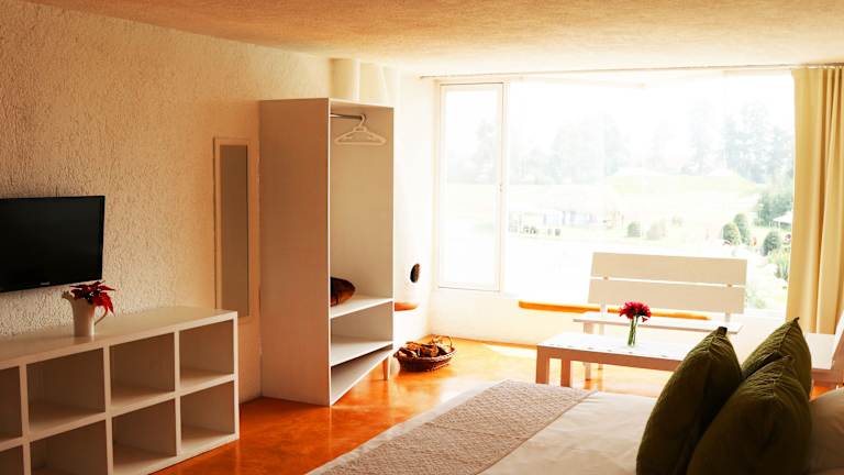 Die Hacienda Panoaya liegt in der Nähe von Mexiko-Stadt, etwa 50 km entfernt. Sie befindet sich in Amecameca de Juárez und bietet eine gute Anbindung an die umliegenden Städte und Sehenswürdigkeiten. Die Lage des Hotels ermöglicht es Ihnen, die Natur und die atemberaubende Landschaft der Region zu erkunden. In der Nähe befinden sich auch verschiedene Attraktionen wie Tepoztlán und Oaxtepec, die einen Besuch wert sind.