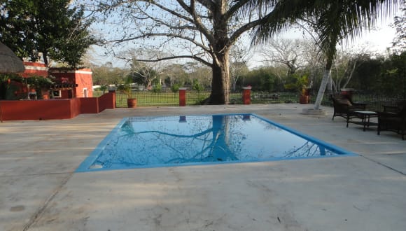 Neben dem Pool bietet die Hacienda San Jose Poniente auch einen Massageservice an, der Ihnen pure Entspannung bietet. Darüber hinaus verfügt die Hacienda über einen eigenen Cenote, in dem Sie ein einzigartiges Badeerlebnis genießen können.