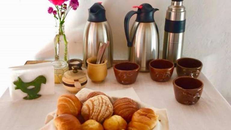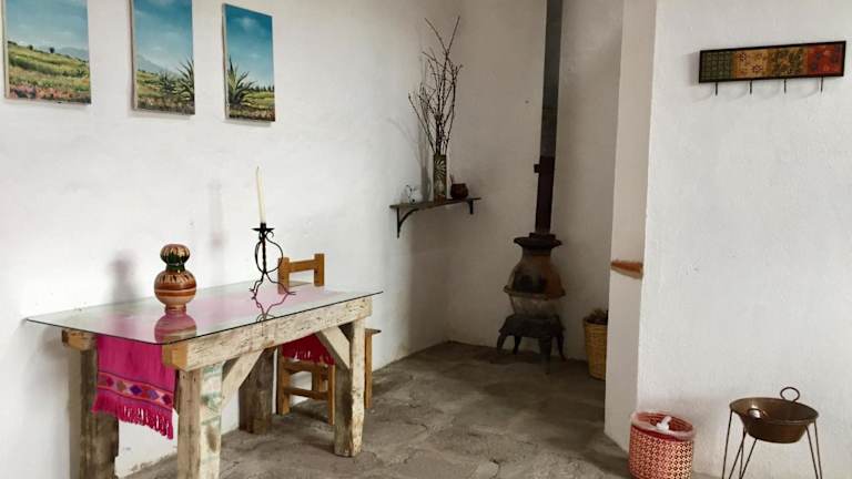 Die Unterkunft bietet eine Küche, in der köstliche Mahlzeiten zubereitet werden. Die Zutaten stammen aus dem eigenen Garten der Hacienda, was für ein authentisches und frisches Geschmackserlebnis sorgt. Der gemeinsame Wohnbereich mit Bibliothek kann auch für Mahlzeiten genutzt werden, was eine gesellige Atmosphäre schafft.