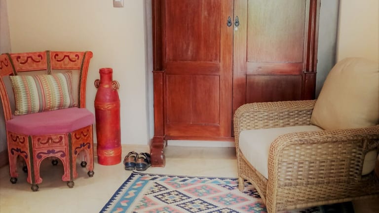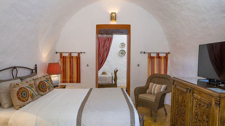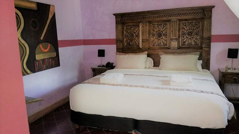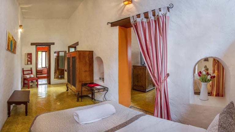 Die Zimmer der Hacienda Santa Cruz befinden sich im Casa Principal, dem ehemaligen Landsitz des Haupthauses. Jedes Zimmer ist einzigartig eingerichtet und verfügt über einen Deckenventilator, Klimaanlage, ein Ankleidezimmer und ein eigenes Bad. Die Einrichtung ist geprägt von bunten Textilien oder hellen gestrichenen Wänden und schafft eine gemütliche Atmosphäre.