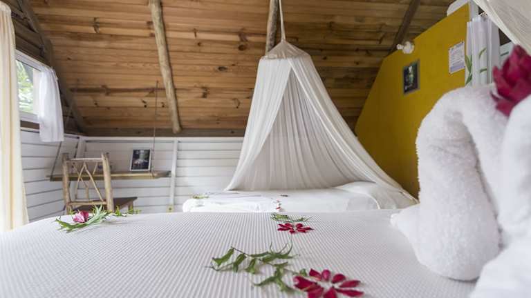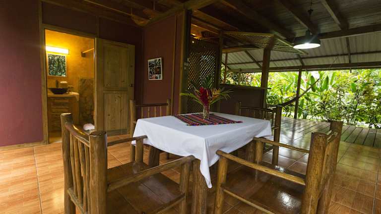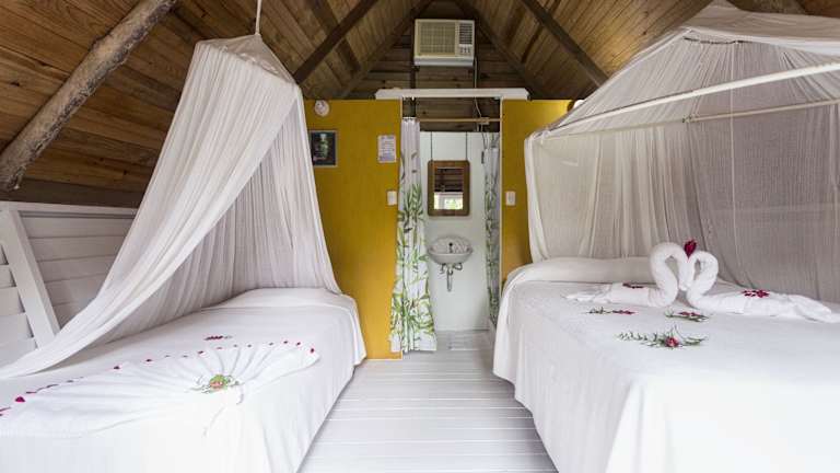 Die Zimmer im Hotel Hacienda Tijax Jungle Lodge sind komfortabel und klimatisiert. Jedes Zimmer verfügt über ein eigenes Bad und bietet einen gemütlichen Rückzugsort nach einem ereignisreichen Tag in der Natur.