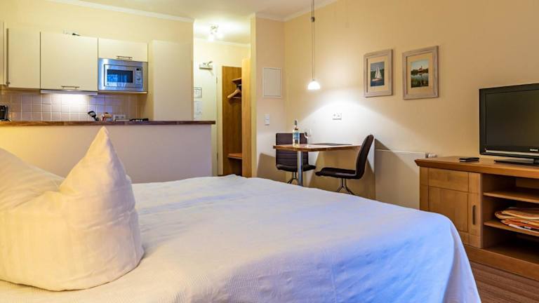 Die Unterkunft Hafendomicil Appartement WH03 - Zander ist eine Ferienwohnung, die mit modernen Annehmlichkeiten ausgestattet ist. Sie hat einen Balkon, von dem aus die Gäste den Blick auf den See genießen können. Die Wohnung bietet ein Schlafzimmer und ermöglicht den Check-in zwischen 16:00 und 18:00 Uhr sowie den Check-out bis um 10:00 Uhr. Eine Zahlung per Überweisung ist vor Anreise erforderlich und die Unterkunft ist eine Nichtraucherunterkunft.