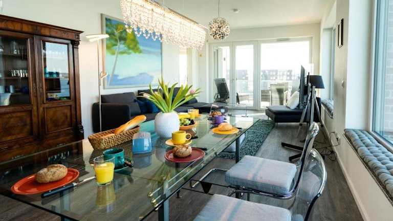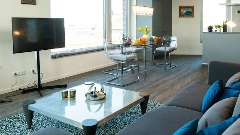 Das Apartment im Hafenspitze App 29 Mirador verfügt über 2 Schlafzimmer, ein Wohnzimmer mit einem Flachbild-TV, eine voll ausgestattete Küche mit Backofen und Geschirrspüler sowie 2 Badezimmer mit Dusche. Das Apartment bietet somit genügend Platz und Komfort für einen angenehmen Aufenthalt.