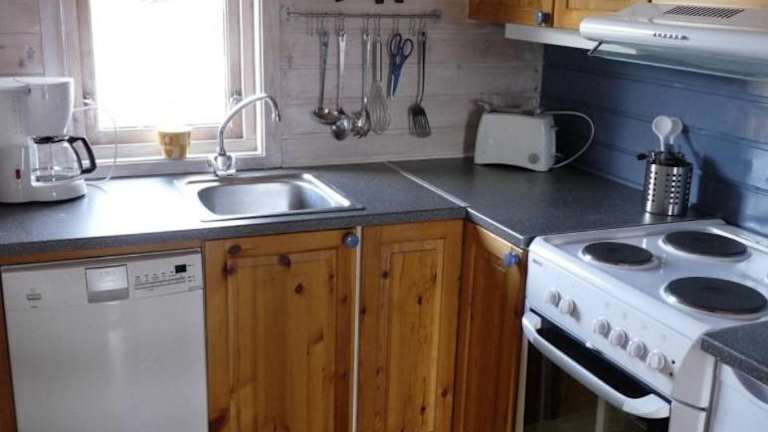 Die voll ausgestattete Küche der Unterkunft enthält einen Kühlschrank, Geschirrspüler, Ofen, Herdplatte, Toaster, Kaffeemaschine und Wasserkocher. Grillmöglichkeiten stehen ebenfalls zur Verfügung.