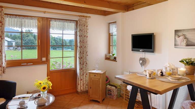 Die Zimmer der Haldenmichelhof Ferienwohnungen sind mit einer Terrasse ausgestattet, die einen Blick auf die Berge bietet. Jedes Zimmer verfügt über einen TV mit Satellitenkanälen und eine eigene Küchenzeile. Das eigene Badezimmer ist mit kostenlosen Pflegeprodukten, einem Haartrockner und einer Dusche ausgestattet. Bettwäsche und Handtücher sind in allen Zimmern vorhanden.