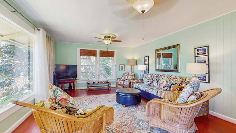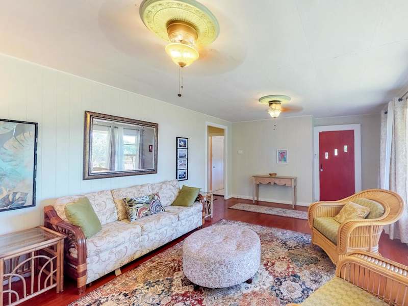 Das Hamakua Hale Ohana Country Retreat in Papaikou bietet Ihnen eine entspannte und komfortable Unterkunft inmitten der Natur. Genießen Sie die ruhige Lage, den schönen Garten und den Blick auf die Berge. Das Ferienhaus verfügt über 3 Schlafzimmer, eine voll ausgestattete Küche und ein Badezimmer. WLAN ist kostenlos verfügbar und Handtücher sowie Bettwäsche werden gestellt. Die Unterkunft liegt in der Nähe des Strandes Lyman Bay und verschiedener Sehenswürdigkeiten wie dem Pacific Tsunami Museum und dem Lyman Museum & Mission House. Der internationale Flughafen Hilo ist ebenfalls in der Nähe.