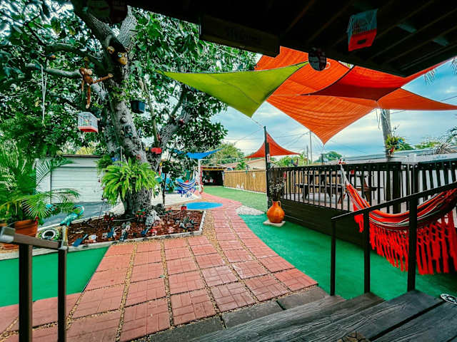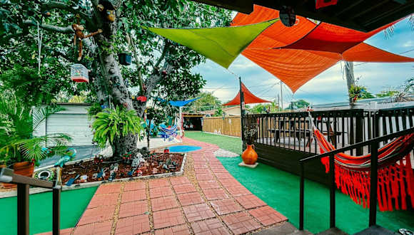 Das Ferienhaus Hammocks & mini-golf! 10 mins from Beach! bietet eine komfortable Unterkunft mit einem Garten und kostenlosen Fahrrädern. Zu den Annehmlichkeiten gehören ein kostenloser Privatparkplatz und kostenfreies WLAN. Die Unterkunft verfügt über eine Veranda/Patiobereich sowie Zugang zu verschiedenen Freizeitmöglichkeiten.
