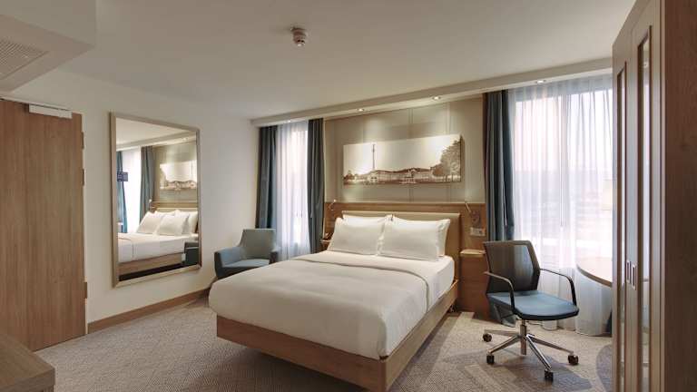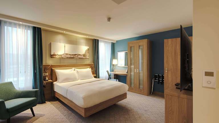 Die Zimmer im Hampton by Hilton Stuttgart City Centre sind komfortabel und modern eingerichtet. Sie verfügen über eine Klimaanlage, einen Flachbild-TV, einen Safe und kostenloses WLAN. Jedes Zimmer hat auch ein eigenes Badezimmer mit Dusche, kostenlosen Pflegeprodukten und einem Haartrockner. Ein Schreibtisch und ein Wasserkocher sind ebenfalls vorhanden.