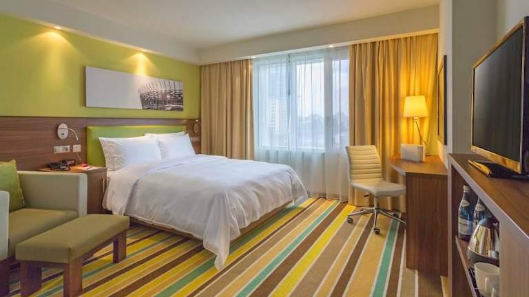 Das Hampton by Hilton Warsaw City Centre bietet eine erstklassige Lage im Zentrum von Warschau und ist ideal für Reisende, die die Stadt erkunden möchten. Die klimatisierten Zimmer sind modern ausgestattet und bieten kostenfreies Breitband-WLAN sowie Zugang zu einem Fitnessstudio. Gäste können das kostenfreie Frühstücksbuffet genießen und rund um die Uhr Snacks und Getränke an der Hotelbar erhalten. Das Hotel verfügt auch über ein Businesscenter und einen 24-Stunden-Zimmerservice.