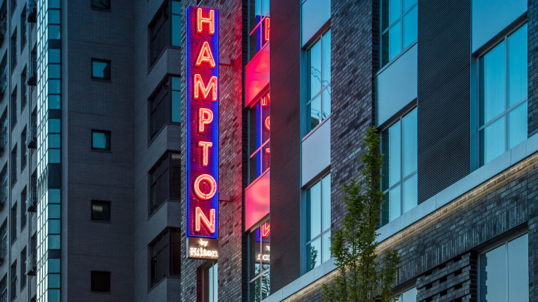 Das Hotel bietet ein kontinentales Frühstück sowie ein warmes Frühstück an. Das Hampton Grab-n-Go-Frühstück wird von Montag bis Freitag serviert. Die Gäste können auch in der nahegelegenen Portland's Brewery speisen. Im Hotel gibt es auch den The Suite Shop, der rund um die Uhr geöffnet ist und verschiedene Snack-Optionen bietet.