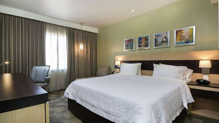 Das Hampton Inn by Hilton Silao-Aeropuerto in Silao, Mexiko bietet seinen Gästen einen angenehmen Aufenthalt mit einem Außenpool und kostenfreiem WLAN. Das Hotel verfügt über eine 24-Stunden-Rezeption und kostenlose Parkplätze. Die Zimmer sind komfortabel und gut ausgestattet, mit Kabel-TV, einem Kühlschrank und einem eigenen Bad. Das Hotel bietet auch einen Supermarkt und verschiedene Einrichtungen wie einen TV-Raum und eine Bibliothek. Das Restaurant serviert Frühstück und es gibt auch eine Bar. Gäste können den Außenpool, das Fitnessstudio und den Wellnessbereich mit Spa und Massageanwendungen nutzen.