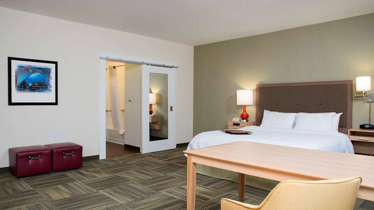 Die Zimmer im Hampton Inn Kalamazoo sind modern und komfortabel eingerichtet. Jedes Zimmer verfügt über Annehmlichkeiten wie einen Flachbild-Kabel-TV, einen Kühlschrank, eine Kaffeemaschine und ein Bügeleisen/-brett. Das eigene Badezimmer ist mit einer Badewanne oder Dusche und einem Haartrockner ausgestattet. Kostenlose Pflegeprodukte stehen ebenfalls zur Verfügung. WLAN ist in allen Zimmern kostenlos verfügbar.