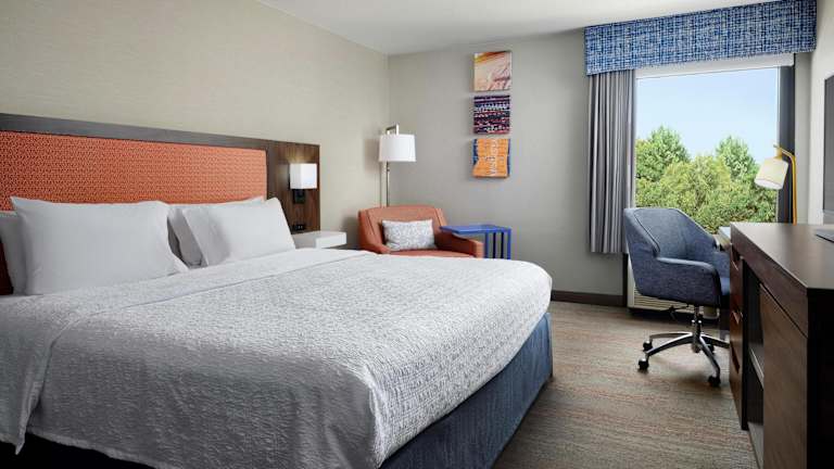 Das Hampton Inn Meridian verfügt über 116 Zimmer, die alle modern und komfortabel eingerichtet sind. Jedes Zimmer bietet kostenfreies WLAN, einen HD-TV und eine Kaffeemaschine. Ein Schreibtisch steht ebenfalls zur Verfügung. Für zusätzlichen Komfort können die Gäste auch den Zimmerservice nutzen.
