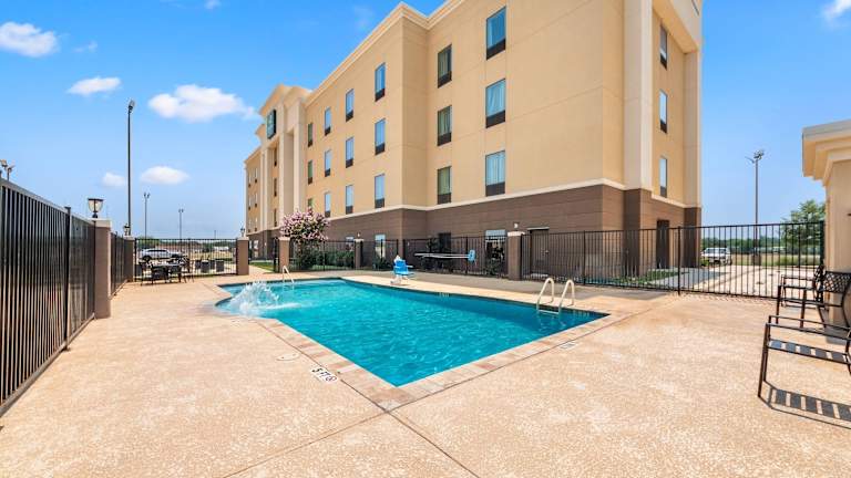 Das Hampton Inn Pearsall verfügt über einen Außenpool, in dem Sie sich erfrischen können, sowie ein Fitnesscenter, in dem Sie aktiv bleiben können. Das Hotel bietet auch eine Gepäckaufbewahrung und ein Businesscenter für Ihre Bedürfnisse.