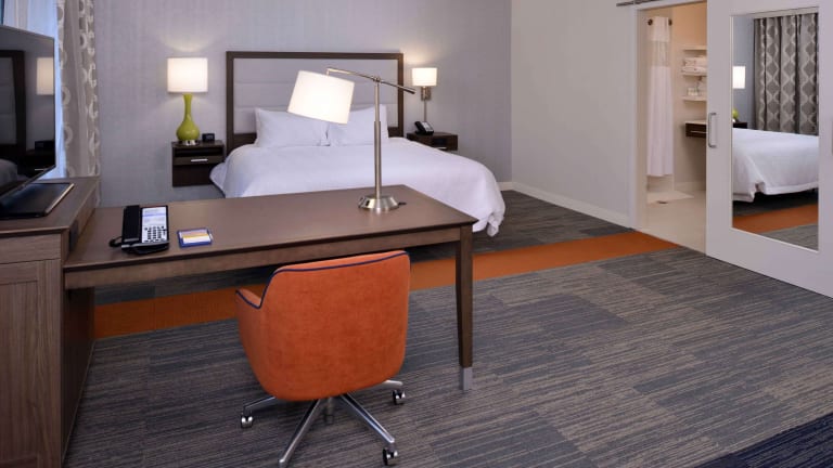 Die 101 Zimmer des Hampton Inn & Suites Albany-East Greenbush, NY bieten Komfort und Bequemlichkeit für die Gäste. Jedes Zimmer verfügt über einen TV und eine Kaffeemaschine. WLAN ist im gesamten Gebäude kostenlos verfügbar. Das Hotel bietet auch Annehmlichkeiten wie einen Innenpool und ein Fitnesscenter für aktive Gäste. Die 24-Stunden-Rezeption steht den Gästen zur Verfügung und sorgt für einen angenehmen Aufenthalt.
