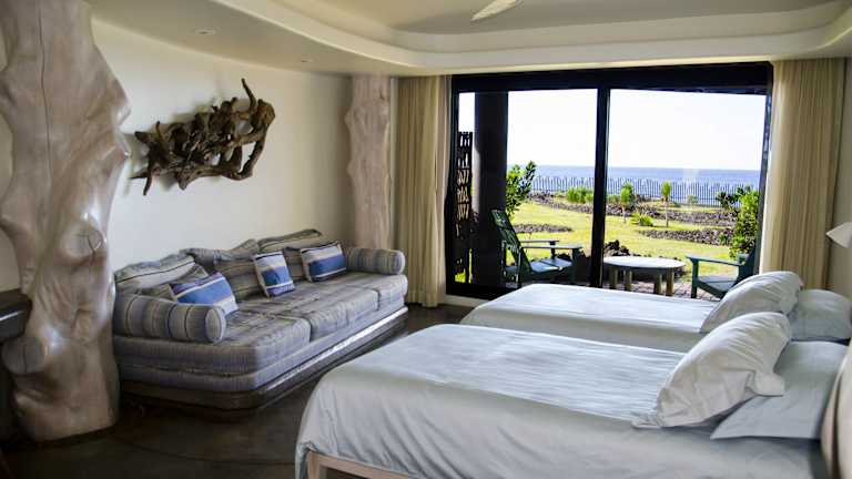 Die 75 Zimmer im Nayara Hangaroa sind stilvoll eingerichtet und bieten eine Vielzahl von Annehmlichkeiten, darunter Klimaanlage, Minibar und eigenes Bad. Einige Zimmer verfügen über einen Balkon. Rollstuhlgerechte Zimmer sind ebenfalls verfügbar.