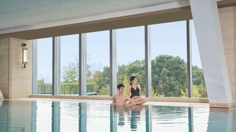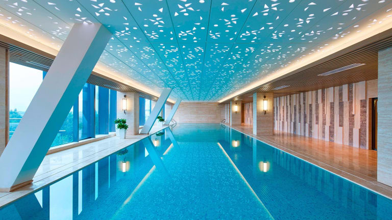 Das Hangzhou Marriott Hotel Qianjiang bietet seinen Gästen eine Vielzahl von Freizeiteinrichtungen, darunter einen Innen- und Außenpool, in denen Sie trainieren und sich entspannen können. Der Wellnessbereich des Hotels bietet Saunen, einen Whirlpool und verschiedene Massage- und Schönheitsanwendungen.