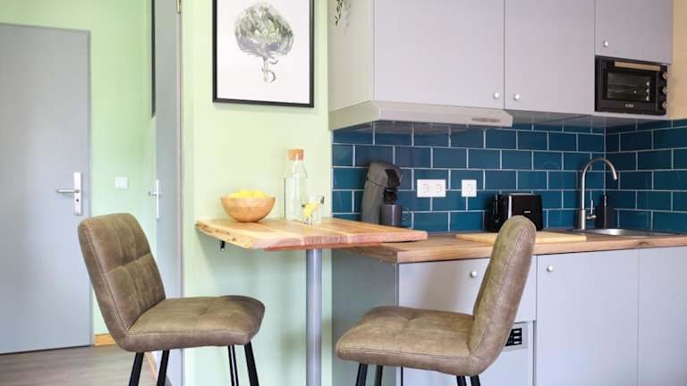 Die Wohneinheiten sind mit einer voll ausgestatteten Küche, einem Esstisch, einem Flachbild-TV mit Satellitenkanälen sowie einem eigenen Badezimmer mit Dusche und Haartrockner ausgestattet. Des Weiteren stehen ein Kühlschrank, Geschirrspüler, Ofen, Kaffeemaschine und Wasserkocher zur Verfügung. Die Zimmer sind schallisoliert und teilweise mit einem Safe ausgestattet.