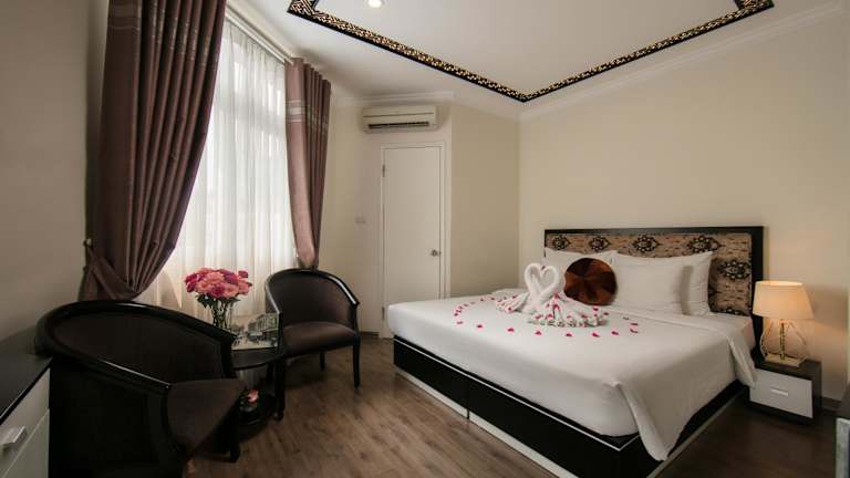 Die klimatisierten Zimmer im Serenity Diamond Hotel bieten Ihnen Komfort und Bequemlichkeit während Ihres Aufenthalts in Hanoi. Jedes Zimmer verfügt über einen Computer und kostenfreies WLAN, damit Sie mit der Welt in Verbindung bleiben können. Zur weiteren Ausstattung gehören Sat-TV, eine Minibar, ein Tee- und Kaffeezubereiter sowie ein Haartrockner. Die Badezimmer sind mit einer Warmwasserdusche ausgestattet und bieten Ihnen alles, was Sie für eine angenehme Zeit benötigen.
