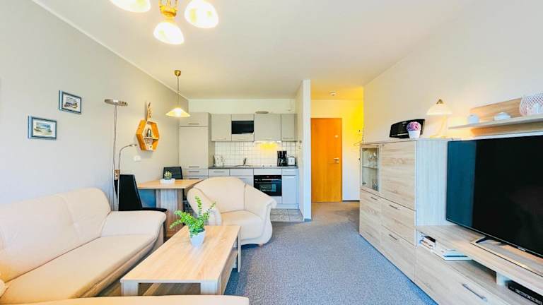 Hanse-Hof Wohnung 08 bietet eine Ferienwohnung mit einem Balkon, kostenlosem Privatparkplatz und kostenlosem WLAN. Die Unterkunft ist für Gäste ab 18 Jahren zugänglich und erlaubt keine Junggesellen-/Junggesellinnenabschiede. Haustiere sind nicht gestattet. Bettwäsche und Handtücher sind gegen Gebühr erhältlich oder dürfen selbst mitgebracht werden. Eine Zahlung per Überweisung ist vor der Anreise erforderlich.