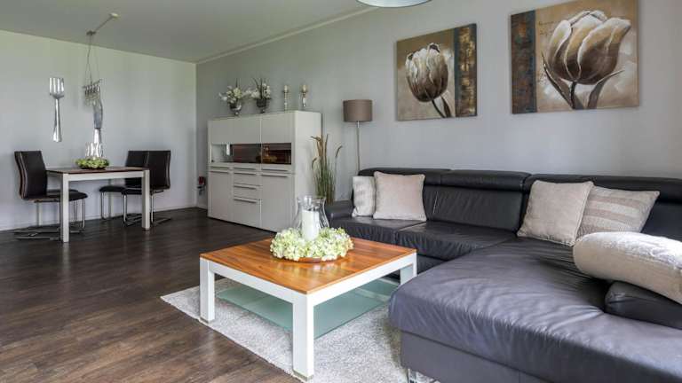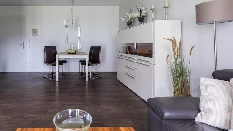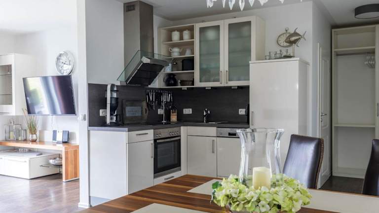 Die Ferienwohnung verfügt über eine voll ausgestattete Küche mit Kühlschrank und Kaffeemaschine, die Selbstverpflegung ermöglicht. Grillmöglichkeiten sind ebenfalls vorhanden.