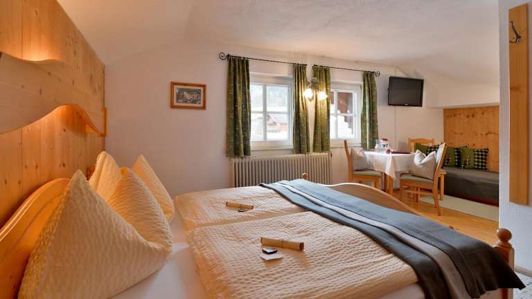 Der Hanserhof im Herzen von Fügen im Zillertal bietet eine ideale Lage für Skifahrer und Naturliebhaber. Mit seinem traditionellen Tiroler Stil und gemütlichen Zimmern und Apartments, die mit Massivholzmöbeln ausgestattet sind, bietet er den perfekten Ort zum Entspannen nach einem Tag auf der Piste. Der hauseigene Bauernhof mit Pferden und Hühnern sorgt für zusätzlichen Spaß und Abenteuer.