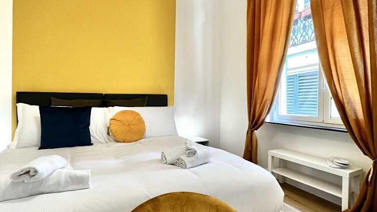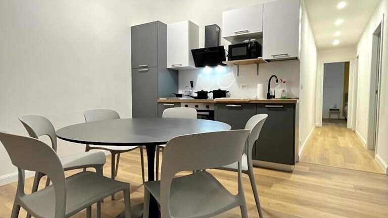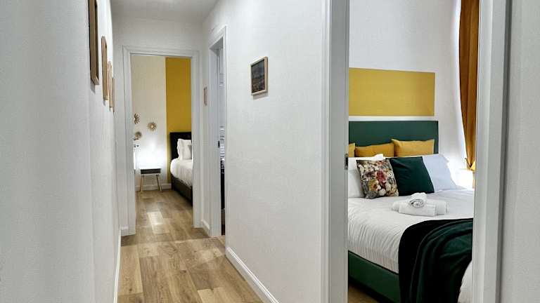 Die Ferienwohnung besteht aus zwei Schlafzimmern, einem Wohnzimmer und einer voll ausgestatteten Küche, die mit einem Kühlschrank und einer Kaffeemaschine ausgestattet ist. Es stehen zwei Badezimmer mit Bidet und Dusche zur Verfügung. Handtücher und Bettwäsche werden bereitgestellt, und die Unterkunft ist klimatisiert.
