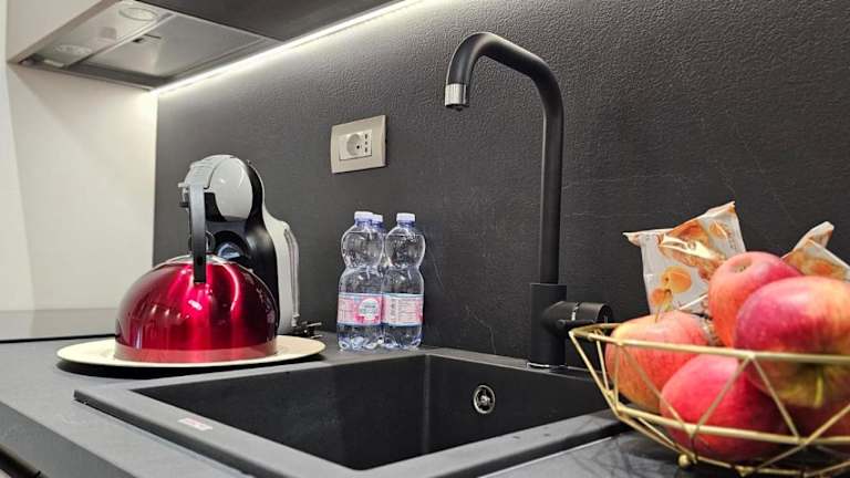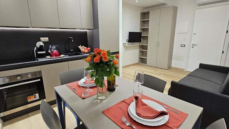 Die Unterkunft umfasst ein Schlafzimmer, ein Wohnzimmer und eine voll ausgestattete Küche mit Kühlschrank und Kaffeemaschine. Zusätzlich steht den Gästen ein Badezimmer mit Bidet und Dusche zur Verfügung. Die Zimmer sind klimatisiert und es stehen Familienzimmer zur Verfügung.