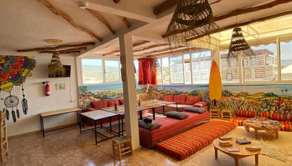 Das Happy Surf Hostel befindet sich im Zentrum von Taghazout, weniger als 400 m vom Strand Taghazout und 1,9 km vom Strand Madraba entfernt. Die Unterkunft ist 4,3 km vom Golf Tazegzout sowie 8,4 km vom Atlantica Parc Aquatique entfernt. Weitere Sehenswürdigkeiten in der Nähe sind der 18 km entfernte Hafen von Agadir, das Amazighe Heritage Museum in 21 km und die Medina Polizzi in 25 km. Der Flughafen Al Massira ist 40 km entfernt.