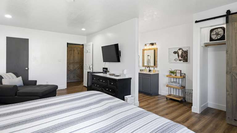 Das Happy Trails BnB in Tropic bietet komfortable und klimatisierte Unterkünfte mit kostenfreiem WLAN und Zugang zu einer Terrasse. Hier können Sie sich entspannen und die malerische Umgebung erkunden. Spielen Sie eine Partie Billard oder unternehmen Sie Wanderungen und Angelausflüge in der Umgebung. Die Unterkunft befindet sich in der Nähe von beliebten Sehenswürdigkeiten wie dem Sunrise Point und dem Sunset Point. Der Regionalflughafen Cedar City ist nur 155 km entfernt.