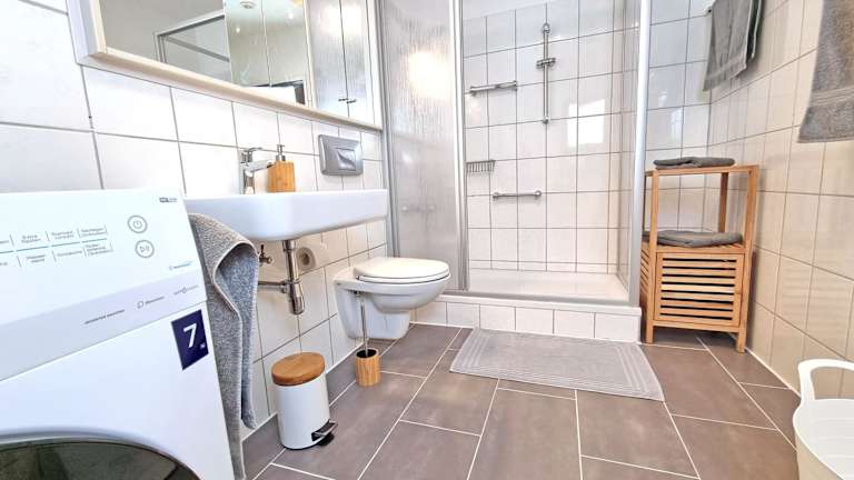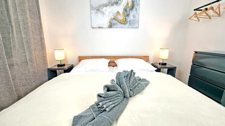 Die Ferienwohnung setzt sich aus 2 Schlafzimmern, einem Wohnzimmer, einer voll ausgestatteten Küche mit Kühlschrank und Kaffeemaschine sowie 2 Badezimmern mit Dusche und Haartrockner zusammen. Handtücher und Bettwäsche sind in der Unterkunft vorhanden.