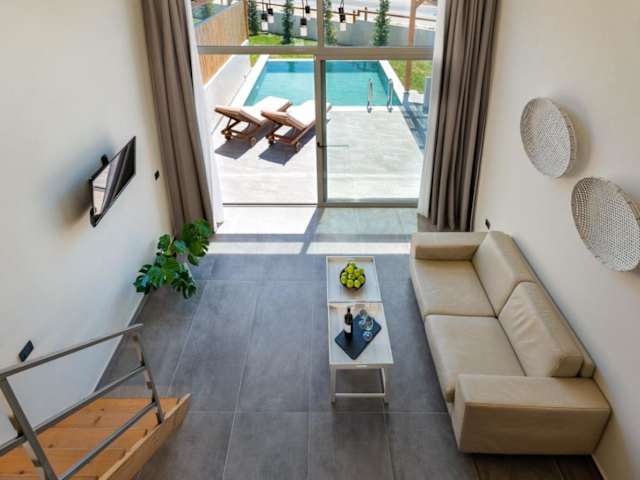 Die Unterkunft Haraki Luxury Villas zeichnet sich durch einen Poolblick aus und bietet einen eigenen Pool sowie einen Garten. Die Villa ist klimatisiert und beinhaltet ein Schlafzimmer, ein Wohnzimmer und eine voll ausgestattete Küchenzeile. Die Ausstattung umfasst auch einen Flachbild-TV mit Satellitenkanälen. Die Villa ist als Nichtraucherunterkunft konzipiert und ist ausschließlich für Erwachsene vorgesehen. Es sind keine Feiern wie Junggesellenabschiede erlaubt.