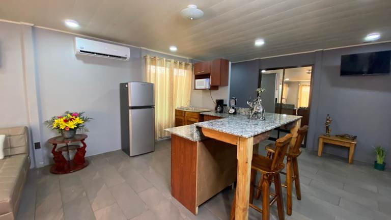 Die Unterkunft bietet eine voll ausgestattete Küche, die mit einem Kühlschrank, einer Mikrowelle, einer Herdplatte und einer Kaffeemaschine ausgestattet ist, wodurch Selbstverpflegung möglich ist.