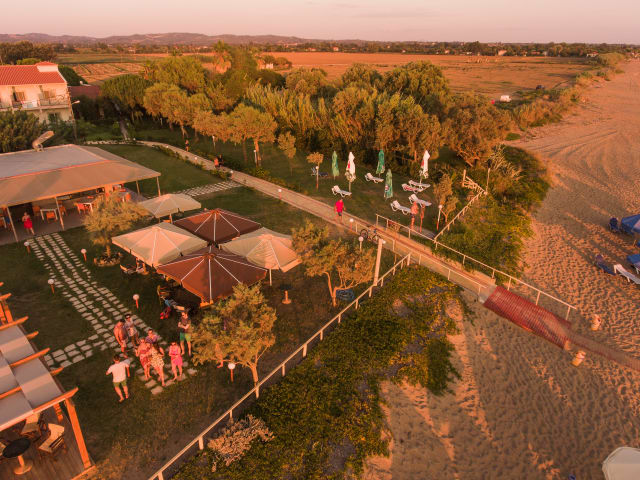 Das Hotel HARMONY Beach, ein neues 3-Sterne-Hotel am Kouroutas- Strand, hat 2016 seine Türen geöffnet und begrüßt Sie herzlich in einer der schönsten und privilegiertesten Orten des westlichen Peloponnes. Es verfügt über 17 Zimmer und bietet luxuriösen Aufenthalt zu besonders günstigem Preis und Autonome Bungalows, 35qm, optimal für vierköpfige Familien, 30m vom Strand entfernt und von dichter Bepflanzung umgeben, bieten sorglose, idyllische Ferien für Naturliebhaber. Die moderne Architektur und die warmen, irdischen Farbtöne der Räume verbinden sich ideal mit dem Grünen der umgebenden Natur, während die Dienstleistungen, die Organisation und die freundliche Bedienung einen äußerst angenehmen Aufenthalt gewährleisten; hier werden Ihre Ferien zu einem zauberhaften Erlebnis. Grundvorteil des Hotels ist seine optimale Lage, knapp 30m vom unendlichen Sandstrand und dem ionischen hellblauen Wasser. Im Resort finden Sie auch einen Mini- Markt, ein Café – Bar, eine Taverne mit griechischer, traditionellen Küche und ein reiches Frühstück mit Blick auf das Ionische Meer! Unsere Landschaft profitiert von den Vorteilen der Natur und gleichzeitig von ihrer geographischen Lage: sehr nah am Autobahnnetz, 78km von der Stadt und vom Hafen von Patras, 30km vom Kyllini- Hafen, 54km vom Araxos- Flughafen und nur 35km von der antiken Olympia- Stätte entfernt, ist sie ein idealer Startpunkt für Ausflüge in die besondere natürliche Schönheit und in die Geschichte des westlichen Peloponnes.