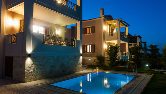 Die Villa Harmony-Crete Residences verfügt über 3 modern eingerichtete Schlafzimmer, eine voll ausgestattete Küche und einen Essbereich. Auf dem möblierten Balkon und der Terrasse können Sie den Blick auf den Pool und die Berge genießen. Das geräumige Wohnzimmer ist mit einem Kamin, einem Flachbild-Sat-TV und einem DVD-Player ausgestattet.