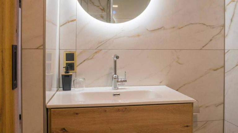 Die Ferienwohnung ist ausgestattet mit einem TV und einer gut ausgestatteten Küche, die einen Kühlschrank, einen Geschirrspüler und einen Ofen umfasst. Zusätzlich steht ein Haartrockner zur Verfügung.
