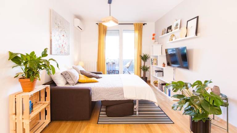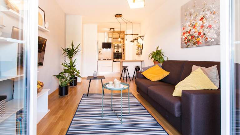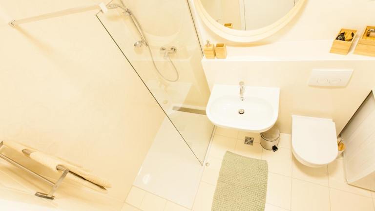 Die Ferienwohnung ist mit einem Schlafzimmer, einem Wohnzimmer und einer voll ausgestatteten Küche mit Kühlschrank und Kaffeemaschine ausgestattet. Das Badezimmer verfügt über eine Dusche und einen Whirlpool. Für die Gäste sind Handtücher und Bettwäsche bereitgestellt. Die Unterkunft ist klimatisiert und bietet zusätzlich Annehmlichkeiten wie Schallisolierung.