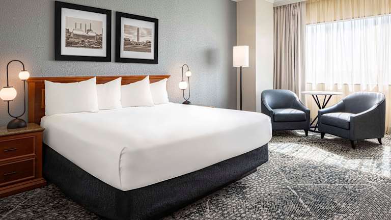 Die Zimmer sind mit Klimaanlage und Heizung ausgestattet. Sie bieten entweder ein Doppelbett oder ein Kingsize-Bett, und Zustellbetten sind auf Anfrage verfügbar. Zur standardmäßigen Ausstattung gehören ein Safe, ein Kühlschrank, eine Tee- und Kaffeemaschine sowie ein Bügelset. Des Weiteren sind ein Telefon, ein Fernseher mit Satelliten-/Kabelempfang, ein Wecker und kostenfreies W-LAN vorhanden. Die Badezimmer verfügen über eine Dusche, einen Haartrockner und Kosmetikartikel. Barrierefreie Badezimmer sind ebenfalls erhältlich.