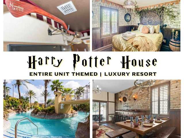 Harry Potter House at Regal Palms Resort - Sage Vacations bietet Übernachtungsmöglichkeiten in einem Ferienhaus, das über einen Außenpool, ein Fitnesscenter, ein Restaurant und kostenloses WLAN verfügt. Eine rund um die Uhr besetzte Rezeption sowie ein kostenloser Privatparkplatz stehen den Gästen zur Verfügung.