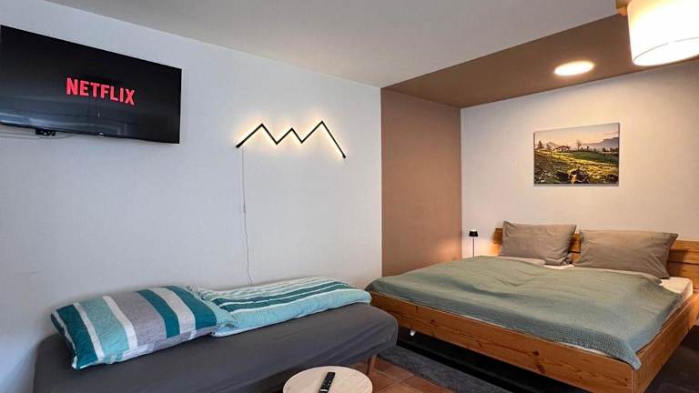 Die Ferienwohnung beinhaltet 1 Schlafzimmer, ein Wohnzimmer, eine gut ausgestattete Küche und ein Badezimmer mit Dusche und Badewanne. Zur Ausstattung gehören ein Satelliten-Flachbild-TV sowie Terrasse und Bergblick. Handtücher und Bettwäsche werden bereitgestellt, und es gibt ein Babybett für Kinder von 0 bis 5 Jahren. Die Zimmer sind schallisoliert und bieten Heizung sowie kostenloses WLAN.
