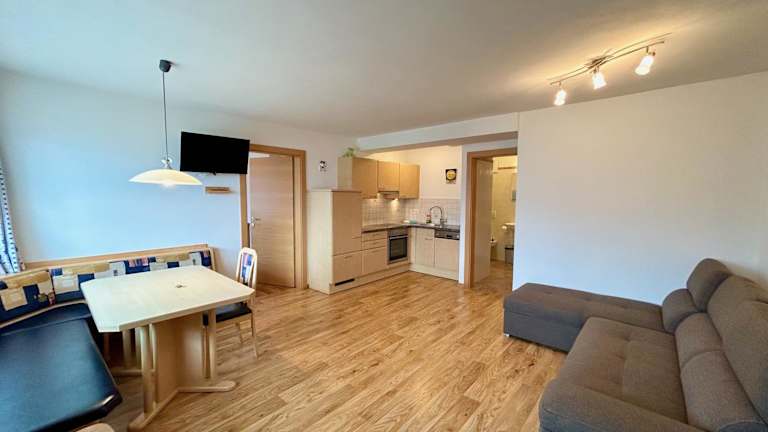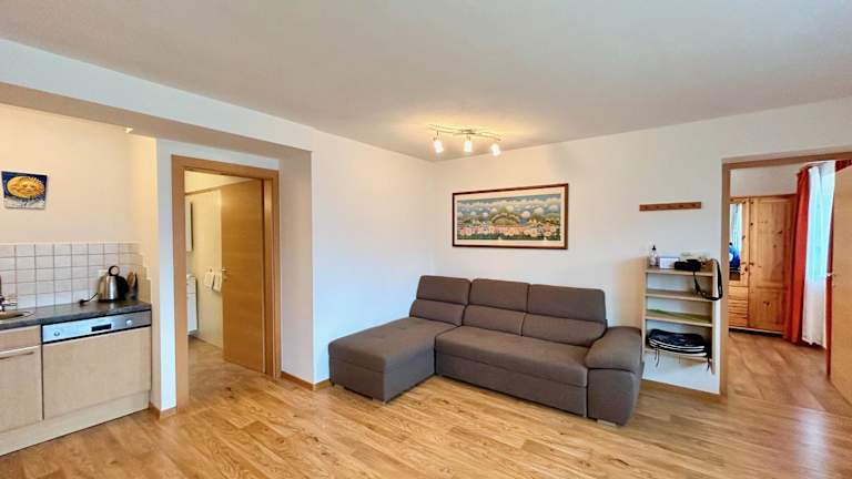 Die Ferienwohnung verfügt über 2 Schlafzimmer, ein Wohnzimmer und ein Badezimmer mit Dusche. Zur Ausstattung gehören eine gut ausgestattete Küche mit Geschirrspüler und Ofen, ein Flachbild-TV sowie eine Terrasse mit Bergblick. Handtücher und Bettwäsche werden bereitgestellt.