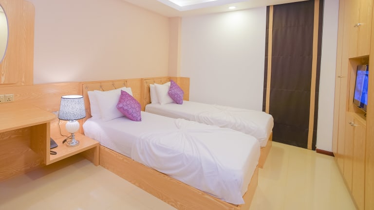 Das Hathaa Beach Maldives auf Hulhumalé bietet eine komfortable Unterkunft nur wenige Schritte vom Oststrand entfernt. Mit einem schönen Garten, einem Restaurant und einer 24-Stunden-Rezeption erfüllt dieses Hotel alle Bedürfnisse der Gäste. Die Zimmer sind klimatisiert und mit modernen Annehmlichkeiten wie Flachbild-TV und eigenem Bad ausgestattet. Genießen Sie ein köstliches Frühstück und erkunden Sie die nahegelegenen Sehenswürdigkeiten. Der Flughafen Malé ist nur 1 km entfernt und bietet eine bequeme Anreise.