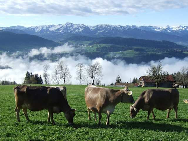 GUTE AUSSICHTEN WEITBLICK auf die Berge des Allgäus, des Bregenzerwalds und der Schweiz – die Sehnsucht nach WEITE und FREIHEIT wird gestillt. Beständig wiederkehrend wechseln die Jahreszeiten und verändern somit den Blick ins Tal. Unser Bauernhof liegt auf 1000 m Höhe, nur 5 Gehminuten vom Ort Sulzberg entfernt, auf der sonnigen Südseite. Besonders beliebt ist unser Haus bei Paaren. Die Wohnung mit den beiden Doppelzimmern, jeweils mit Dusche und WC eignet sich besonders für vier Erwachsene. Besuchen Sie uns unter www.UrlaubamBauernhof.at/baldauf.
