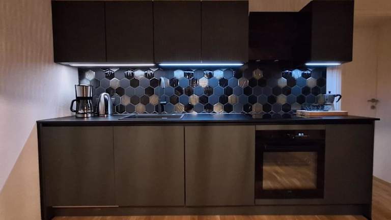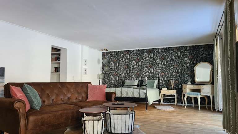 Die Ferienwohnung ist mit einem Schlafzimmer und einem Badezimmer ausgestattet. Zur Einrichtung gehören Bettwäsche, Handtücher, ein Flachbild-TV mit Satellitenkanälen, ein Essbereich, eine voll ausgestattete Küche und eine Terrasse mit Blick auf die Berge. Für zusätzlichen Komfort sind Bettwäsche und Handtücher gegen Aufpreis erhältlich.