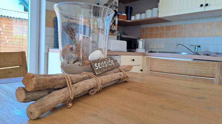 Die Ferienwohnung im Erdgeschoss umfasst 3 Schlafzimmer und ist mit einem TV sowie einer voll ausgestatteten Küchenzeile versehen. Die Küchenzeile bietet einen Kühlschrank und einen Geschirrspüler. Handtücher und Bettwäsche werden bereitgestellt.
