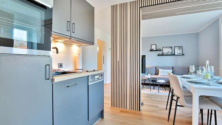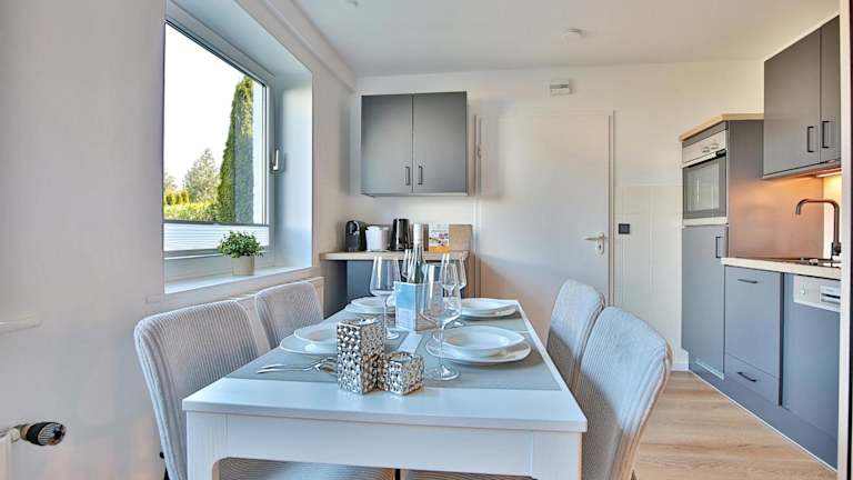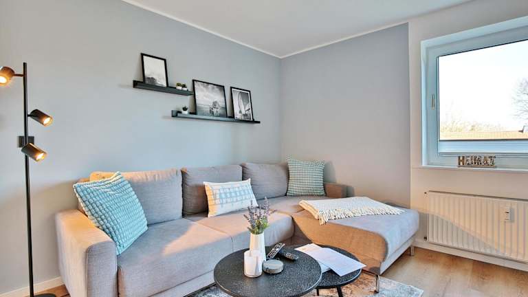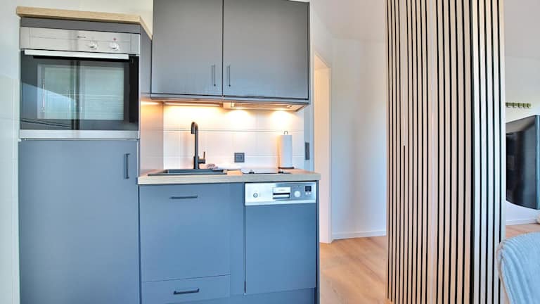 Die Ferienwohnung besteht aus einem Schlafzimmer, einem Wohnzimmer sowie einer voll ausgestatteten Küche, die mit einem Geschirrspüler und einem Wasserkocher ausgestattet ist. Zudem gibt es ein Badezimmer mit Dusche und Haartrockner. Bettwäsche und Handtücher sind nicht im Preis enthalten und können gegen einen Aufpreis in der Unterkunft ausgeliehen werden.