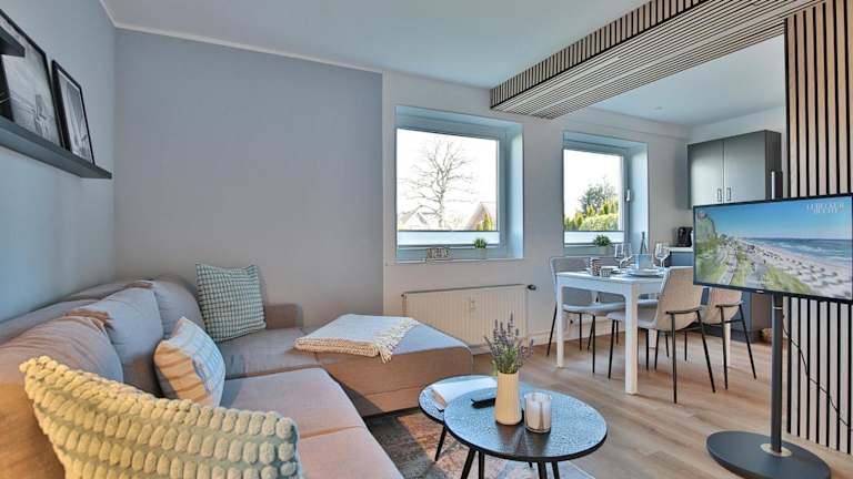 Haus am Nöltingsweg Appartement 08 bietet Übernachtungsmöglichkeiten mit kostenlosem WLAN und einem TV. Die Unterkunft ermöglicht eine moderne und komfortable Ausstattung für einen angenehmen Aufenthalt. Zu den Annehmlichkeiten zählen eine Terrasse und kostenfreie Privatparkplätze. Schildereisen nach Scharbeutz für den Zugang zu pflegeleichten Freizeitmöglichkeiten.
