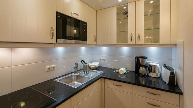 Die Ferienwohnung ist ausgestattet mit einem Kabel Flachbild-TV und einem Wohnzimmer. Die Küche beinhaltet einen Kühlschrank, einen Geschirrspüler, einen Ofen, eine Kaffeemaschine und einen Wasserkocher.