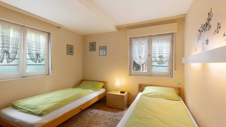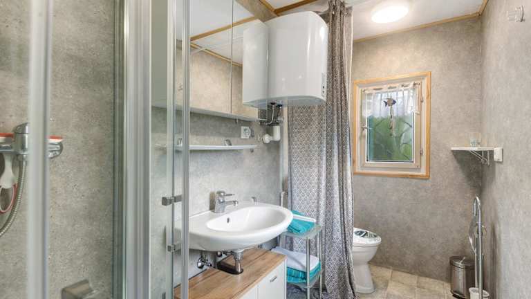 Das Ferienhaus verfügt über 2 Schlafzimmer, eine Küche mit Kühlschrank und Ofen sowie 1 Badezimmer mit Dusche. Kostenfreie Pflegeprodukte und eine Waschmaschine sind ebenfalls vorhanden. Handtücher und Bettwäsche werden bereitgestellt.